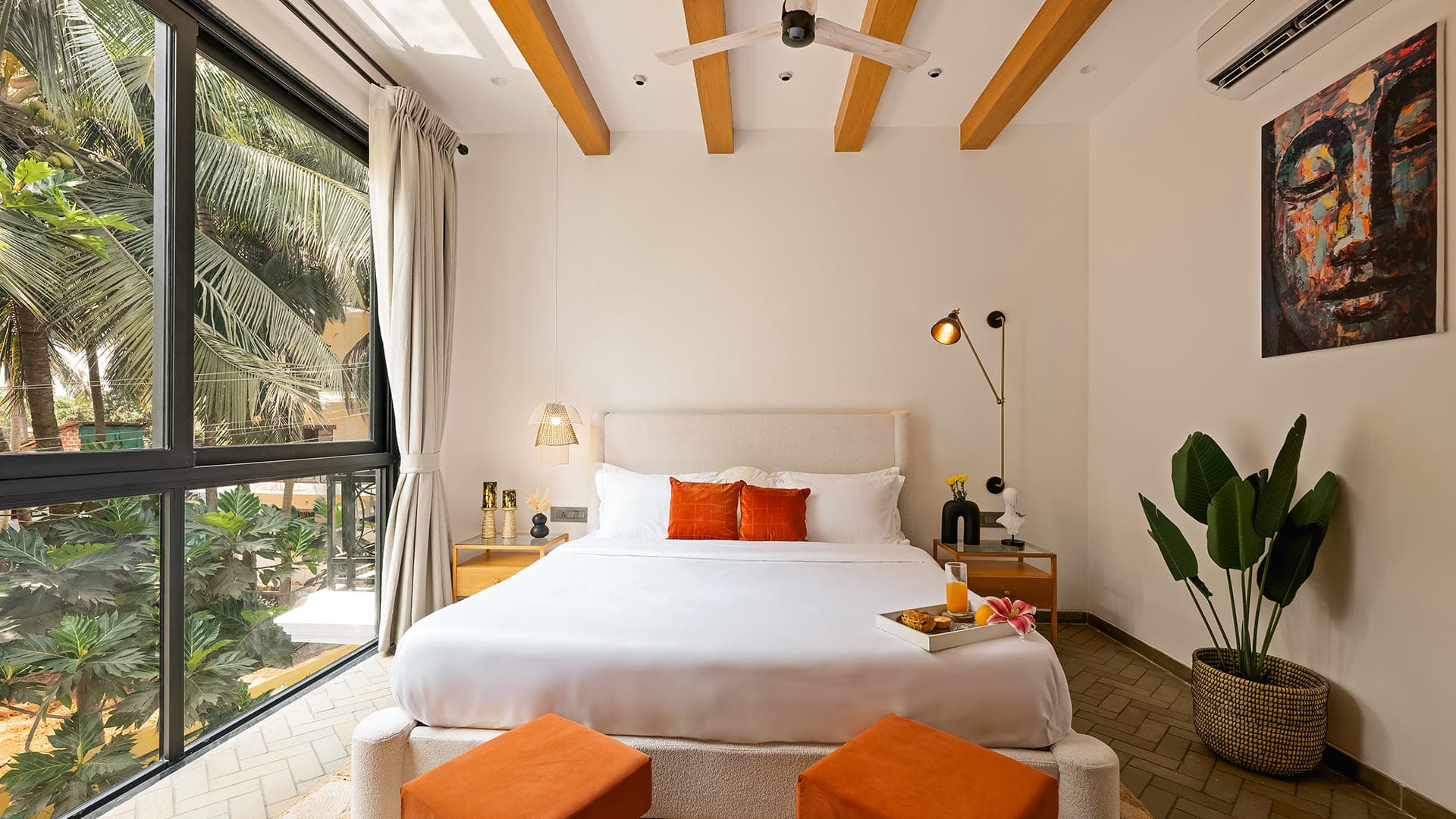 Step into a world of serene beauty at Casa De Roopa - our exquisite 4-bedroom villa in Mandrem, Goa. Nestled just a stone's throw from the pristine shores of Mandrem and Ashvem beaches, this haven offers an idyllic retreat where minimalistic elegance meets ultimate comfort.