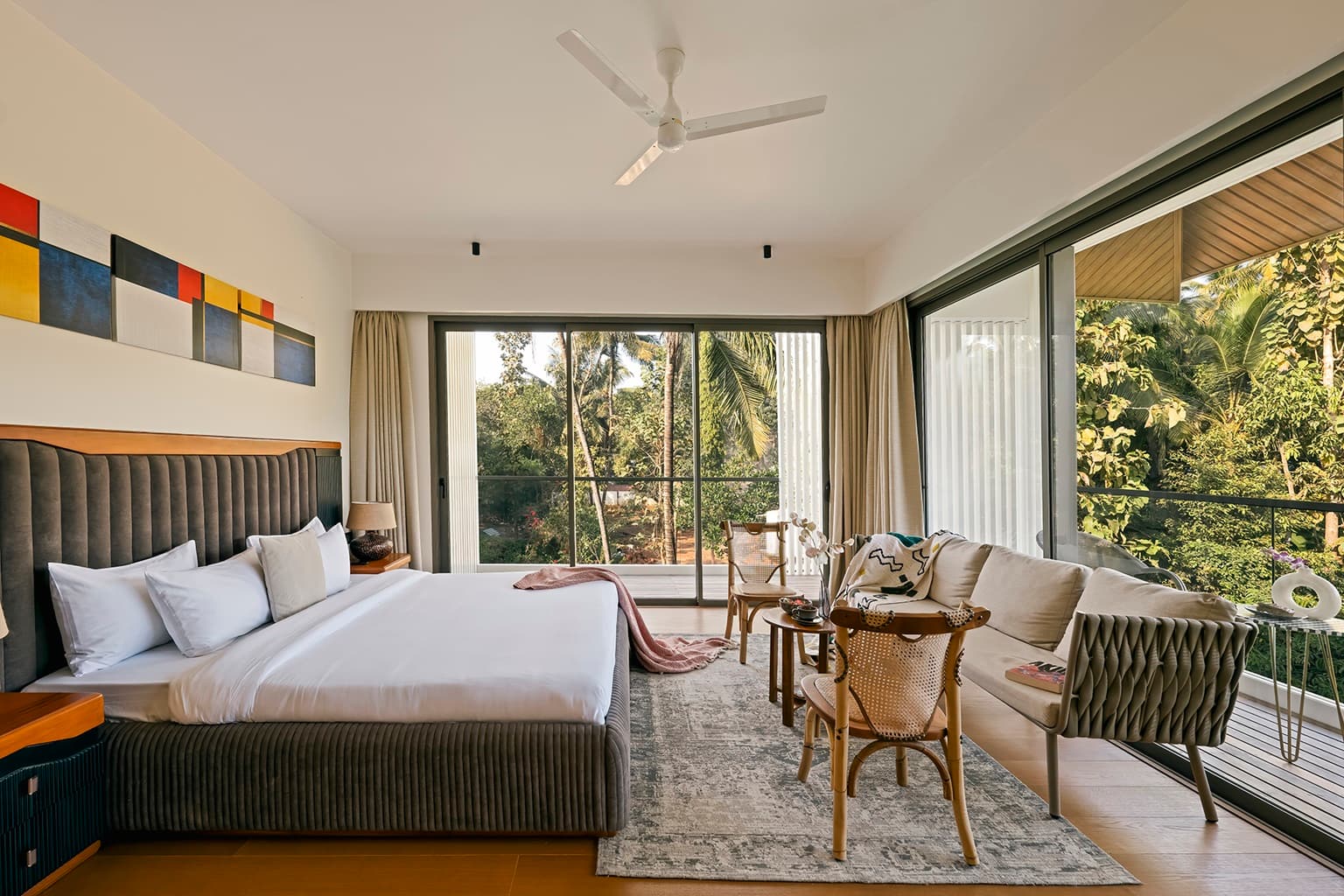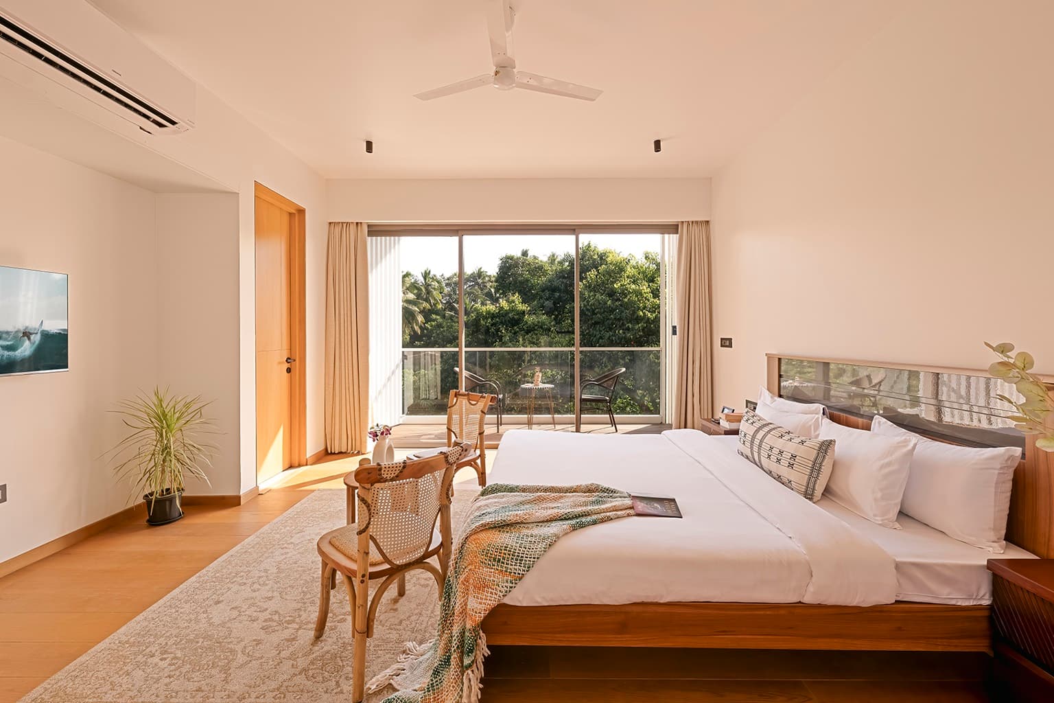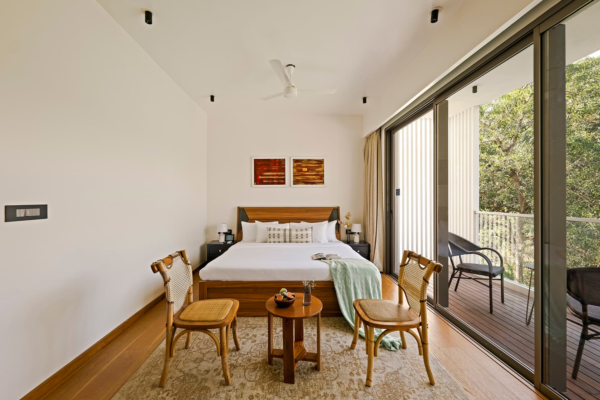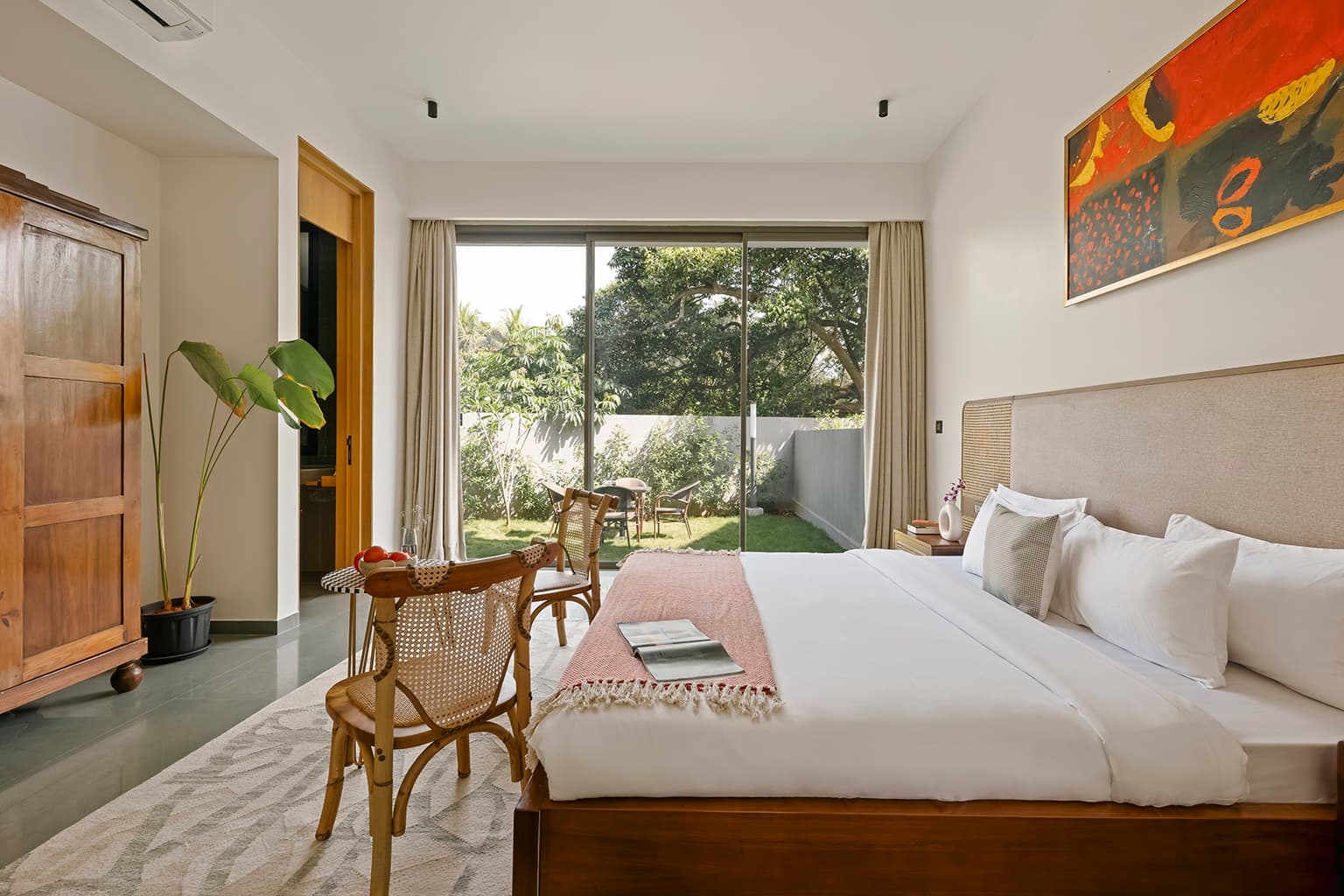 Experience elegance at The Banyan Tree, situated in Siolim - one of the hotspots in Goa. This villa offers an inviting getaway with four spacious bedrooms with ensuite bathroom, high ceilings, and modern decor. The villa comes to life with an artistic touch, as each piece of furniture has been carefully collected from across the world adding life into the home Treat yourself to the luxurious bathtub in the master bedroom to wash away all your stress. Whether on the private balcony, in the expansive pool, or exploring nearby attractions, it delivers a quintessential Goan experience with seamless concierge services.